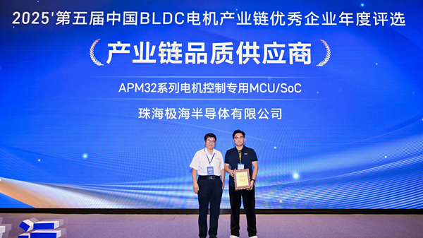 10月24日,Bit-Bit商务网在深圳主办“中国电机智造与创新应用(秋季)峰会”。大会聚焦电机前沿技术与落地案例,为产业链同仁搭建深度交流桥梁。当晚,“2025第五届中国BLDC电机产业链年度评选”揭晓,极海凭借持续输出高可靠、高安全、高品质的电机芯片及配套技术支持,获评“产业链品质供应商”。