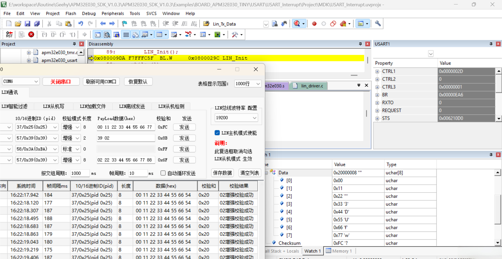 至此,基于APM32E030的LIN通信接收整体框架即搭建完成。