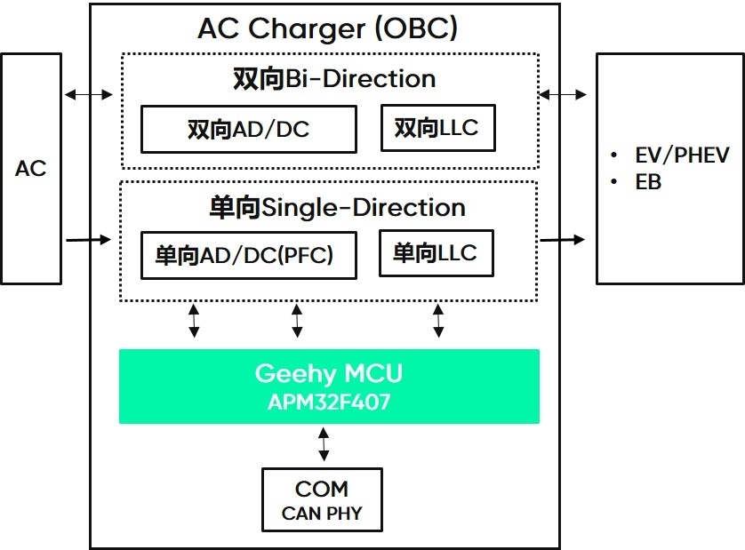 交流充电桩需要的实时人机交互、ADC采集高压信号、PWM检测、读写、数据记录、光耦控制等功能,APM32F407系列MCU凭借丰富的外设及资源,都可满足上述设计需求。