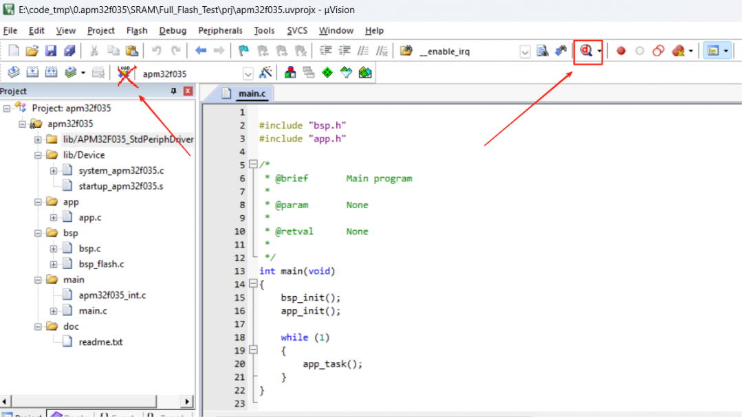 极海APM32F035自带8KB的SRAM可使用,因此如果需要代码全部在SRAM中运行时,编译出来的代码大小+需要的SRAM运行内存不能超过8KB。