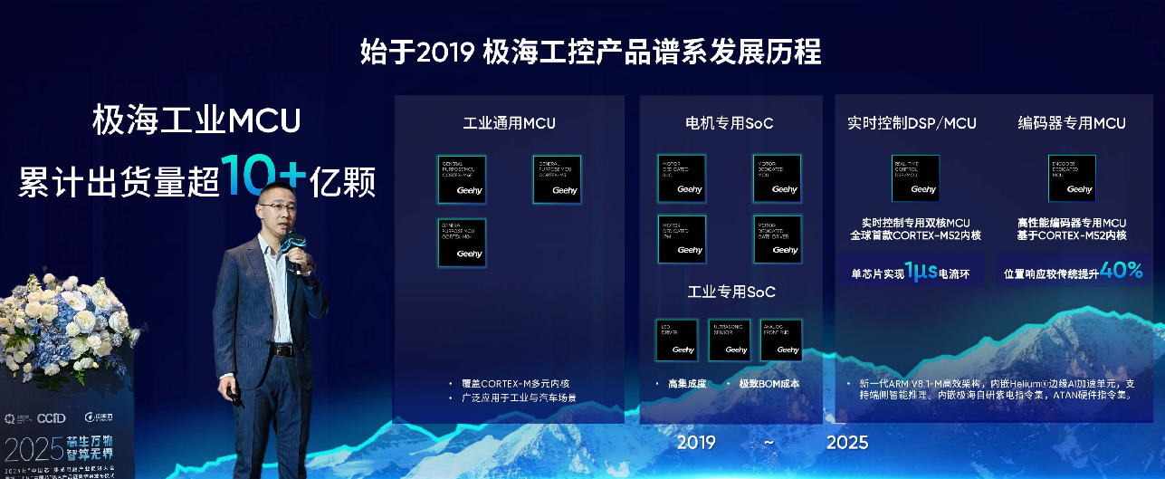 2025年11月14日,以“芯生万物,智算无界”为主题的2025“中国芯”集成电路产业促进大会在横琴粤澳深度合作区隆重召开。极海微电子股份有限公司副总经理刘涛博士受邀出席,并发表《国产工业控制芯片的探索与实践》主题演讲,分享了极海在工业控制领域的技术布局与产业化成果。