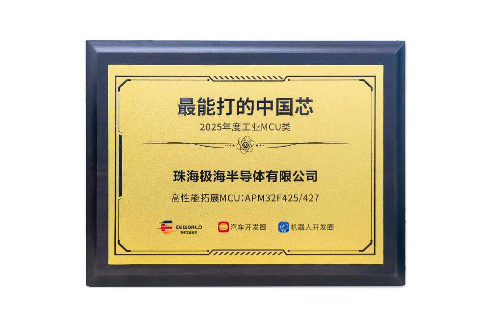 近日,极海半导体宣布,其APM32F425/427系列高性能拓展型MCU荣获2025年度“最能打的中国芯”工业领域奖项。该评选由EEWorld、汽车开发圈及机器人开发圈联合发起,旨在表彰在技术突破性与市场潜力方面表现卓越的国产芯片产品。